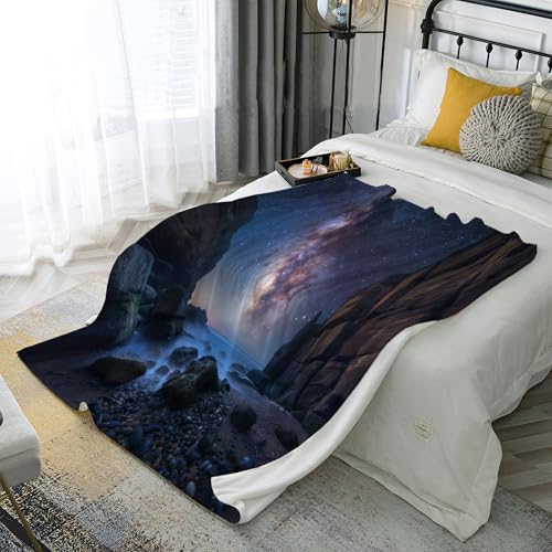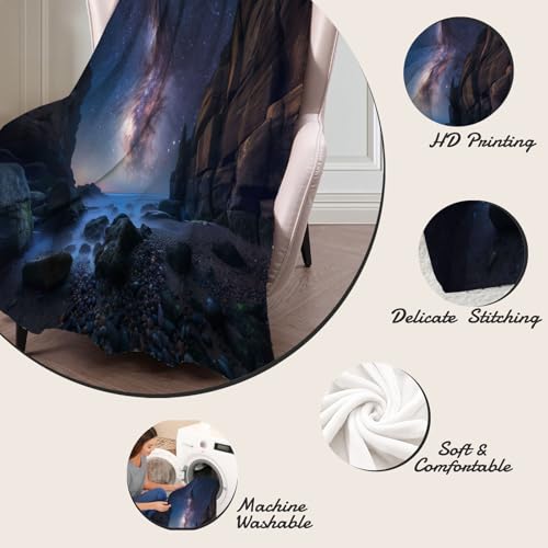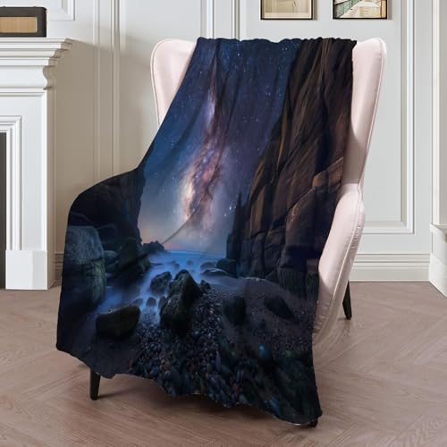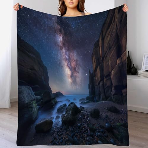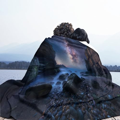 【Angenehm warm】: Wir haben unsere klassische Flanell-Fleecedecke verbessert, damit sie noch weicher gemütlich und hautsympathisch. jetzt mit verbesserter Mikrofaser. Auflage mit Sternenhimmel Felsen Strand muster auf Oberseite, Rückseite in Weiß. Die exquisiten Farben verleihen dieser Decke ein eleganteres und eleganteres Aussehen und verleihen Ihrem Zimmer ein schickes Ambiente.