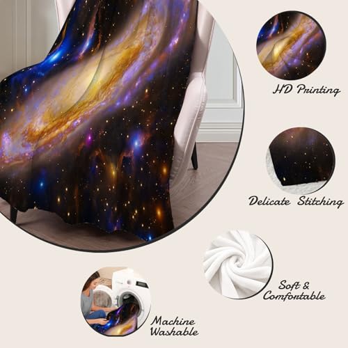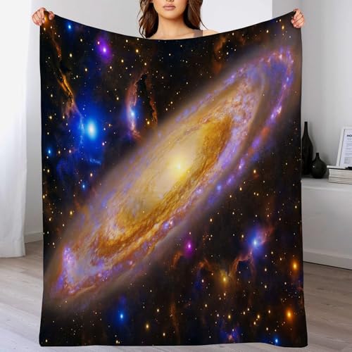 【Angenehm warm】: Wir haben unsere klassische Flanell-Fleecedecke verbessert, damit sie noch weicher gemütlich und hautsympathisch. jetzt mit verbesserter Mikrofaser. Delle mit Sternhaufen Staubwolken muster auf Oberseite, Rückseite in Weiß. Die exquisiten Farben verleihen dieser Decke ein eleganteres und eleganteres Aussehen und verleihen Ihrem Zimmer ein schickes Ambiente.