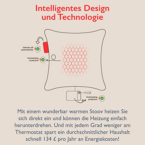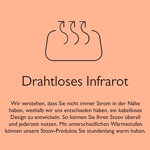 Infrarot-Wärme: Unsere Infrarot-Technologie ist für den Langzeitgebrauch geprüft und belastbar. Die Wärmeelemente auf der Oberseite deines Stoovs kommen direkt mit deinem Körper in Kontakt. Dazu verfügt dein Stoov über einen Überhitzungsschutz.