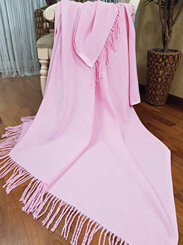 STTS International Baumwolldecke Wohndecke Kuscheldecke Tagesdecke 100% Baumwolle 140 x 170 cm sehr weiches Plaid Rio (Rosa)