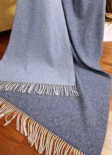 STTS International Kaschmir Decke Wolldecke Wohndecke 100% Merinowolle – Kaschmir – Mix 140 x 200 cm sehr weiches Plaid Kuscheldecke Faro (Dunkelblau-Blau (Double face))
