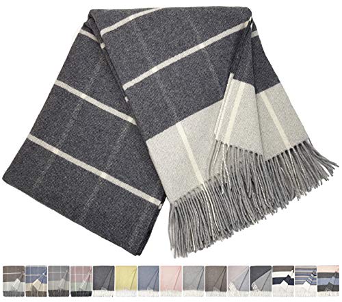 STTS International Kaschmir Decke Wolldecke Wohndecke Merinowolle – Kaschmir – Mix 140 x 200 cm sehr weiches Plaid Kuscheldecke Faro (Grau (Karo))