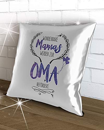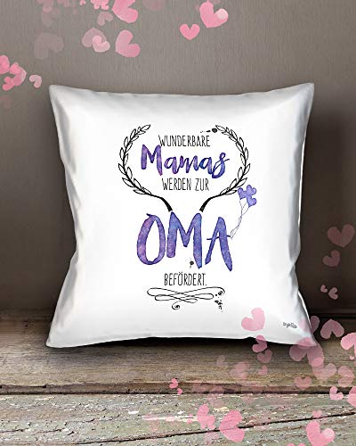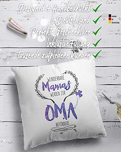 Stylotex Kissen – Geschenk für werdende Oma – Dekokissen Bedruckt in höchster Druckqualität & Designed in Deutschland – Wunderbare Mamas Werden zur Oma befördert – zur Geburt