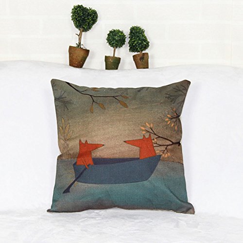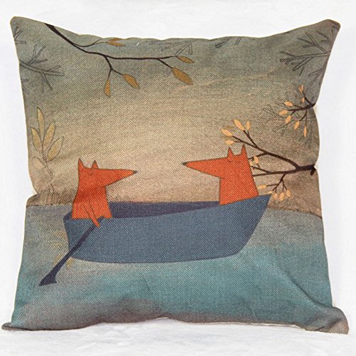 Süße Fuchs Leinen Kissenbezug Kissenhülle in Versschiedenen Muster für Sofakissen Dekokissen (mit Boot rudern)