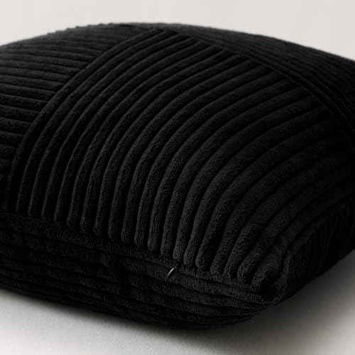 Sungeek 1 Stück Cord Kissenbezug, Kreuz Streifen Muster Kordsamt Kissenbezüge Sofakissen Dekokissen Patchwork Design Deko Zierkissenbezüge Kissenhülle für Wohnzimmer (40x60cm, Schwarz)