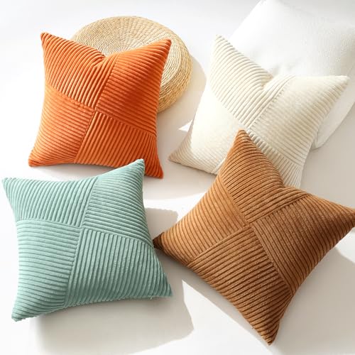 Material: Weiches Cordgewebe, angenehm zu berühren. Es hat eine gute Elastizität, kein Verblassen, kein Pilling. Einzigartige gestreifte Textur verleiht diesen Kissenbezügen Niedlichkeit
