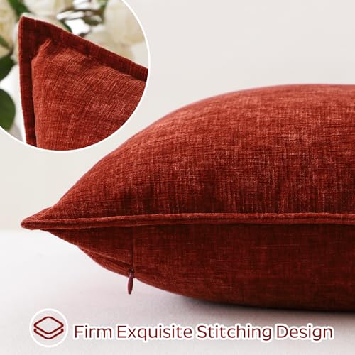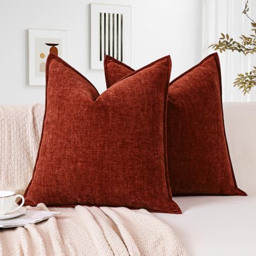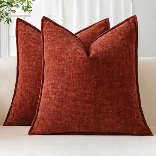 Sungeek 2er Set Chenille Kissenbezüge, Weich Dekorativ Zierkissenbezüge Umwickelte Kante Kissenbezug Dekokissen Deko Bezug Einfarbig Kissenhülle für Sofa Schlafzimmer Wohnzimmer (50x50cm, Rost)