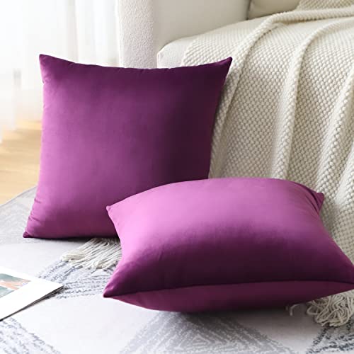Sungeek 2er Set Samt Kissenbezüge, Dekorativ Zierkissenbezüge Weich Kissenbezug Dekokissen Sofakissen Couchkissen Deko Bezug Kissenhülle für Sofa Schlafzimmer Wohnzimmer (60×60 cm, Aubergine Lila)