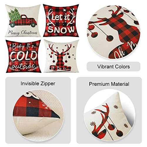 IDEALES HEIMDEKOR – Perfekte Innen- und Außendekoration im Weihnachten. 4 verschiedene Weihnachten-Stil sorgen dafür, dass die Kissenbezüge perfekt zur Heimdekoration passen und leicht zu verschiedenen Wohnstilen passen. Im Rahmen zugunsten Sofa, Couch, Stuhl, Bett, Auto, Zelt, Sitz, Bank und sonstige Möbel. Tolle Dekoration zugunsten Wohnzimmer, Schlafzimmer, Garten, Bauernhaus, Terrasse, Balkon, Schlafzimmer, Küche, Büro, Café, Party, Picknick, Hochzeit usw.
