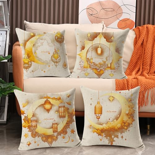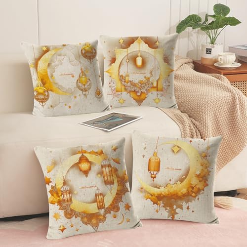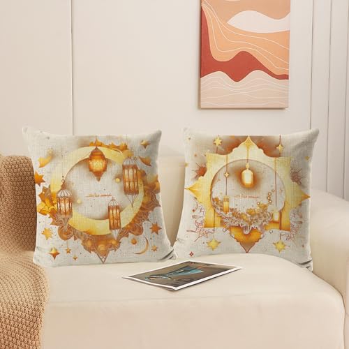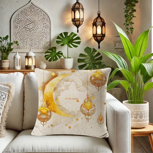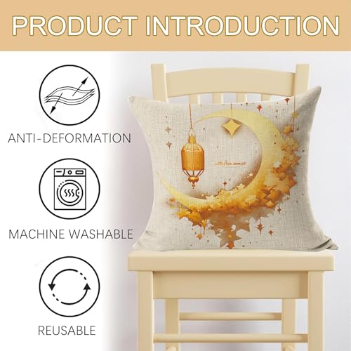 ☪【Ausgezeichnetes und sicheres Material】Dieser Ramadan-Kissenbezug ist aus weichem Stoff, langlebig, abriebfest, knitterfrei, farbecht, schützt Ihr Wurfkissen, gibt Ihnen ein angenehmes Gemütsbewegung und hat eine starke antistatische Bauchgefühl.