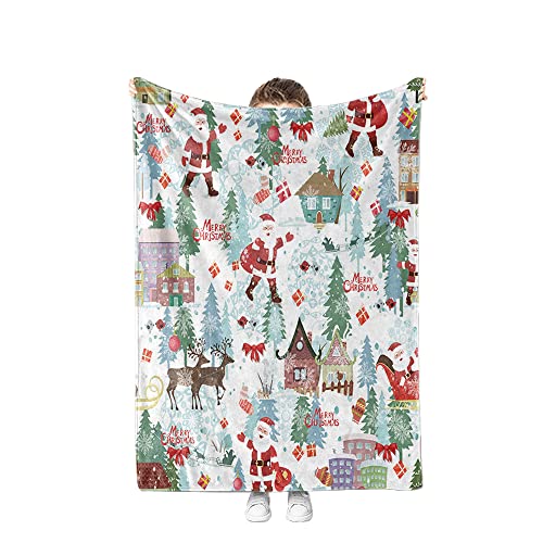 Surwin Kuscheldecke Flanelldecke, mit Weihnachtsmann Druck Weiche Warm Flauschige Mikrofaser Wohndecke, Tagesdecke, Babydecke, Sofadecke, Weihnachten Geschenk (Weiß,100x150cm)