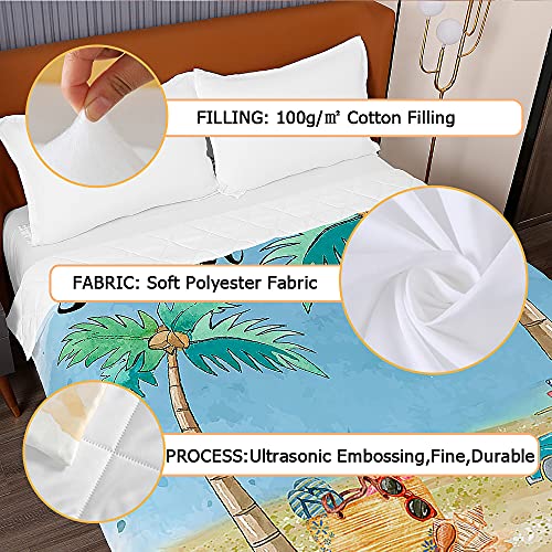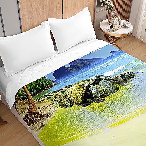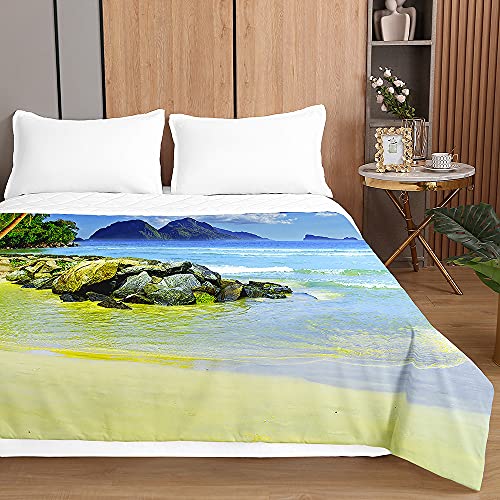 Surwin Tagesdecke Bettüberwurf Steppdecke für Doppelbett Einzelbett, Mikrofaser Wattiert Gesteppt Bettdecke 3D Strand Sommer Dünne Tagesdecken mit Ultraschall Prägung (Inseln,100x150cm)