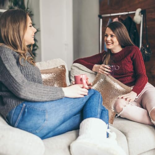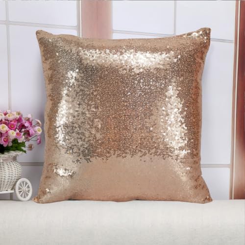 ▇ GORGEOUS&OUTSTANDING: Schöne Pailletten Kissenbezug, super glitzernd unter der Sonne und Lichtern, Pailletten Kissenbezug fügt einen Hauch von atemberaubendem Aussehen für Ihr Sofa. Champagner Pailletten Kissenbezug, ideal für die passende Couch auf allen Farben und Stil.