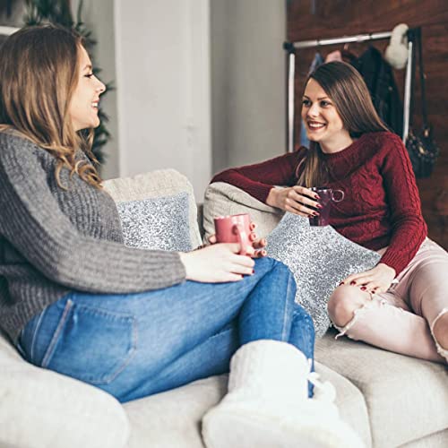 SwirlColor Pailletten Kissen Glitzer Pailletten Platz Werfen Silber Kissenbezug 40 x 40 cm für Zuhause Sofa 2 stücke