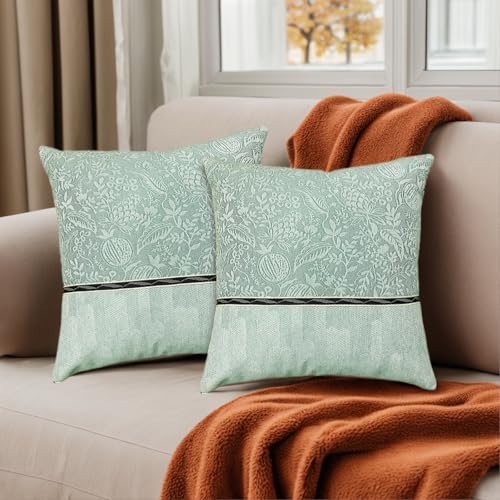 SZHELEJIAM Chenille Kissenbezug Set mit 2 Stück, 45×45 cm Weiche und Luxuriöse Dekorative Kissenhüllen mit Verstecktem Reißverschluss für Sofa, Bett, Wohnzimmer, Wohnkultur, Hellgrün
