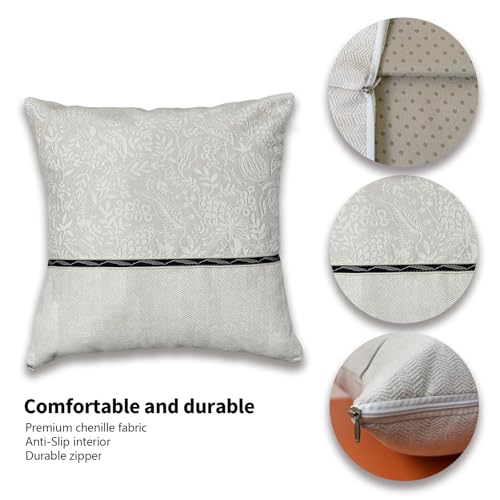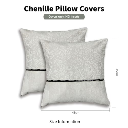SZHELEJIAM Chenille Kissenbezug Set mit 2 Stück, 45×45 cm Weiche und Luxuriöse Dekorative Kissenhüllen mit Verstecktem Reißverschluss für Sofa, Bett, Wohnzimmer, Wohnkultur, Off-Weiß