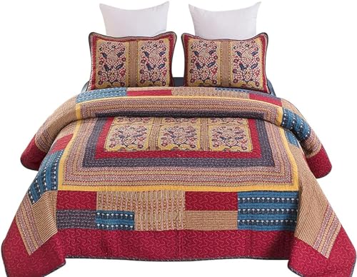 Tagesdecken Überwurf – hochwertige gesteppte Steppdecke aus Kunstseide und Baumwolle, 3-teiliges Bettwäsche-Set, doppelte Multifunktions-Bettdecke/Decke für alle Jahreszeiten und 2 Kissenbezüge, Supe