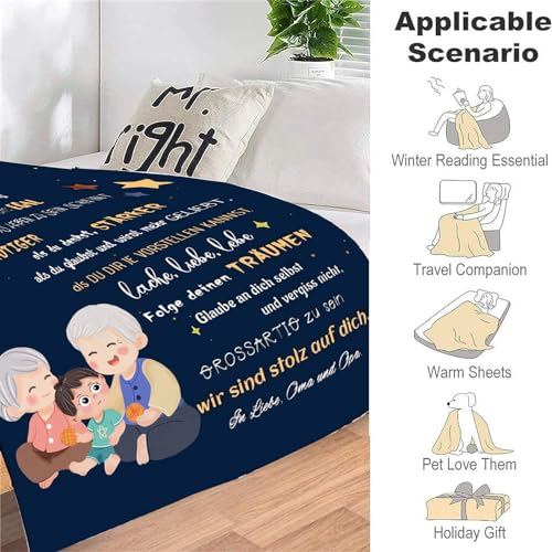 TDDKFB Personalisierte Decke Geschenke Für Enkel von Opa und Oma,Kuscheldecke Flauschige Für Enkel,18 Geburtstag Junge,Witziges Geburtstag Weihnachten Abschluss-Geschenke