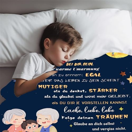 💌【Perfekt Geschenke für ENKEL】Diese personalisierte Steppdecke kann dem Enkel nicht trotzdem körperliche Wärme bringen,sondern,was noch wichtiger ist,den Enkel Ihre Liebe und Fürsorge für ihn spüren lassen und der Seele des Enkels Trost spenden.Wenn Ihre Enkelkinder das Haus desolat und vorübergehend draußen leben,kann dieses Enkelgeschenk sie begleiten,denn wären Sie für sie da,und bringt ihnen Liebe,Wärme und Mut.