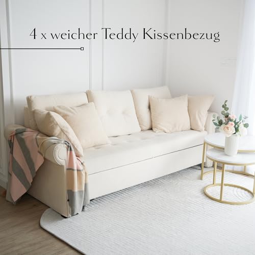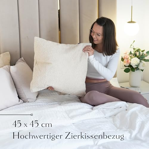 Tauche ein in ultimativen Komfort und Stil mit unseren modernen Kissenbezügen ganz teddyähnlichem Material. Diese luxuriösen Bezüge vereinen Gemütlichkeit und Eleganz und verleihen jedem Weltraum eine wohnliche Atmosphäre. Unsere Kissenbezüge sind ganz hochwertigem, flauschigem Material gefertigt, das sich abgedreht weich und kuschelig anfühlt. Der Teddy-Look verleiht deinen Kissen einen charmanten, zeitgemäßen Touch, der deine Einrichtung aufwertet und gleichzeitig eine warme, einladende Atmosphäre schafft. Dank ihrer Standardgröße von 50×50 cm passen unsere Kissenbezüge perfekt auf handelsübliche Dekokissen und Polsterkissen. Egal, ob du sie auf deinem Sofa im Wohnzimmer drapierst, auf deinem Bett im Schlafzimmer platzierst oder als gemütliches Rückenkissen auf deinem Lieblingssessel verwendest, diese Bezüge sind vielseitig einsetzbar und passen nahtlos in deine Einrichtung. Die Pflege unserer Kissenbezüge ist kinderleicht. Sie sind maschinenwaschbar und behalten bekannt als nach mehrmaligem Spülen ihre Form und Farbe. So kannst du dich fortlaufend an deinem flauschigen Komfort erfreuen, ohne dir Gedanken um die Reinigung machen zu müssen.