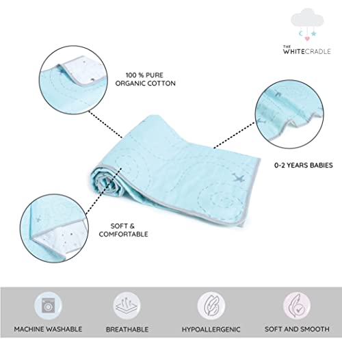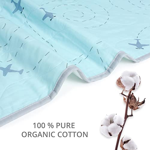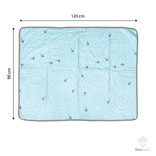 The White Cradle aus Bio-Baumwolle weichste Babydecke für Kinderbett/Bett, mit 3 weichen Stofflagen, umkehrbare Designs, 2 Seiten bedruckter Musselin, Flanell in der Mitte, 95 x 120 cm – Flugzeug