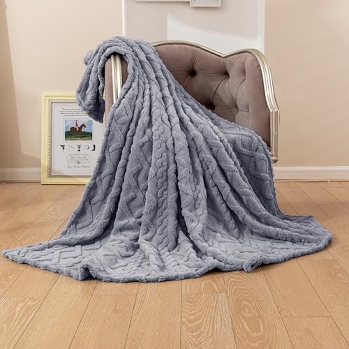 TIANSHU Dünne Kuscheldecke Flauschig Decke Fleecedecke, Weich Blanket Fleecedecke Warm Waschbar Sofadecke Anti-Pilling Geeignet für alle Jahreszeiten(150×200, Grau Blau)