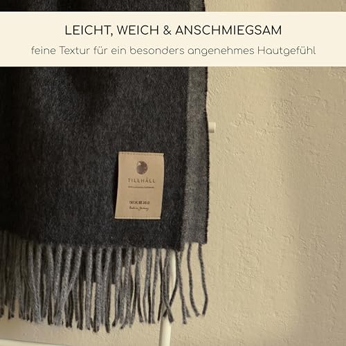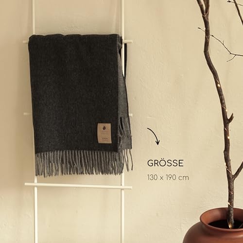 TILLHÅLL Sommer Wolldecke aus 100% Reiner Bio-Lammwolle | leicht & weich | Made in Germany | 130×190 cm | Double-face Optik – Grau