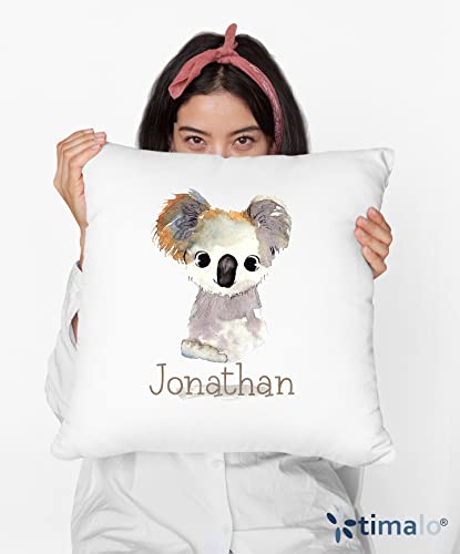 timalo® Cooles Koala Kissen mit Namen | personalisiertes Dekokissen mit Wunschname Kopfkissen Deko für Kinder individuelles Geschenk Namenskissen Koalabär | Kissen-t-9