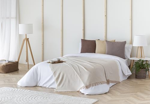 Todocama Mehrzweck-Tagesdecke, Sofaüberwurf, Überwurf für Bett, Sofaüberwurf, Jarapas, einfarbig (125 x 180 cm, sandbeige).