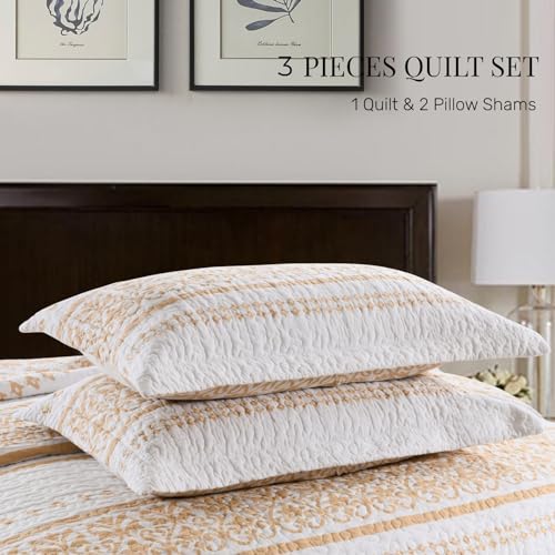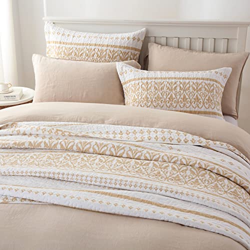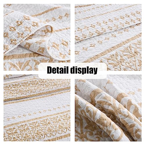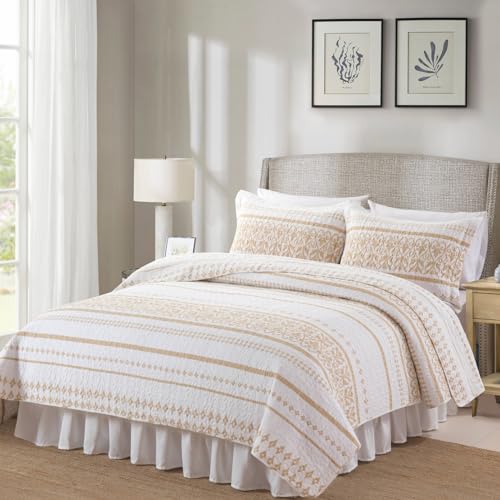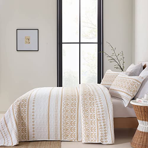 Boho Quilt King Set – King Quilt Bedding Set 3Pcs Bohemian Pattern,Weltraum Cotton Quilt Set King Size Bedspreads Coverlets,White Beige Striped