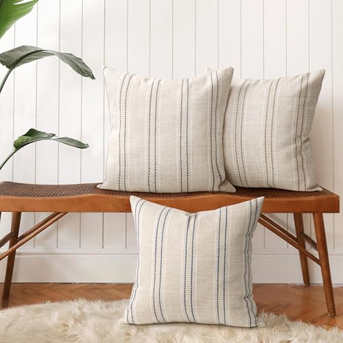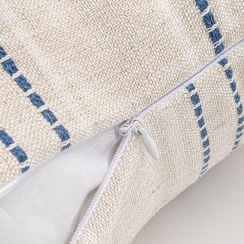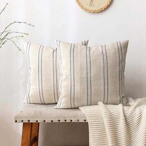 Tone Link. 45,7 x 45,7 cm Farmhouse Wurfkissenbezüge, Set mit 2 strukturierten Kissenbezügen, Beige mit weißen und marineblauen Streifen, Kissenbezug für Sofa, Wohnzimmer (nur Bezug)