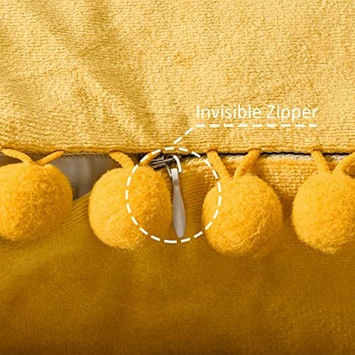 Topfinel 2er Set Samt Kissen mit Pompoms Einfarbig Kissenbezüge Dekorative Kissenhülle Kopfkissen Sitzkissen Dekokissen Couchkisen für Sofa Schlafzimmer Büro Auto 30X50cm Gelb