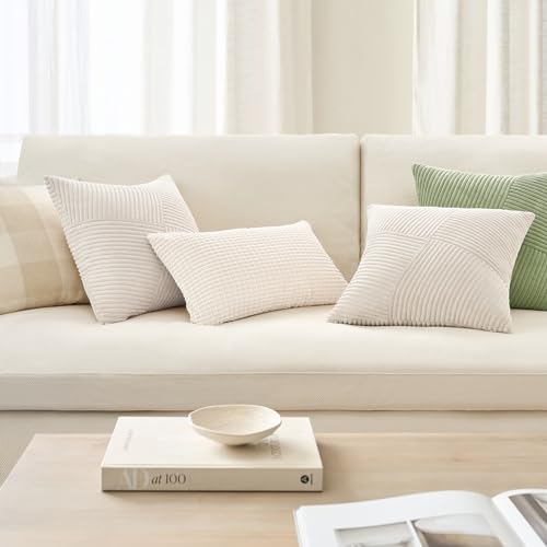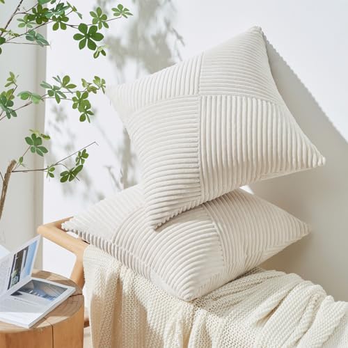 Topfinel Kissenbezug 40×40 Creme Kordsamt 2er Set Windmühle Streifen Muster Kissenbezüge Kissenhülle Sofakissen Dekokissen Couchkissen Zierkissenbezug Patchwork Design Deko Wohnzimmer Büro Hotel