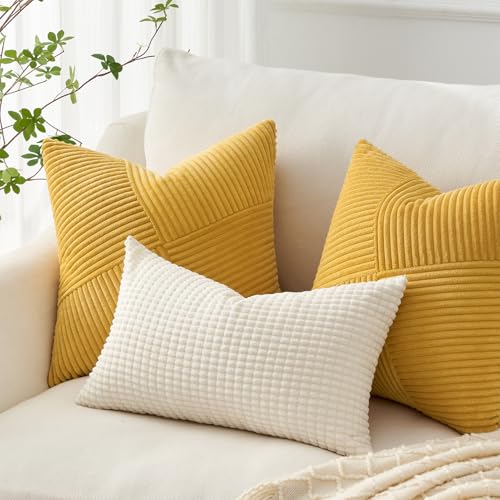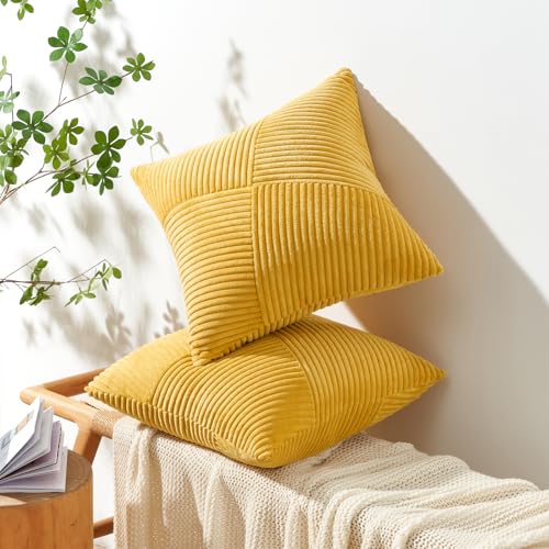 Topfinel Kissenbezug 40×40 Herbst Gelb Kordsamt 2er Set Windmühle Streifen Muster Kissenbezüge Kissenhülle Dekokissen Sofakissen Patchwork Design Deko Wohnzimmer Bett Schlafzimmer Sofa