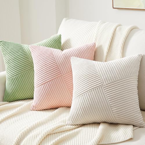 Topfinel Kissenbezug 60×60 Grün Kordsamt 2er Set Windmühle Streifen Muster GroßeKissenbezüge Kissenhülle Dekokissen Sofakissen Patchwork Design Deko Wohnzimmer Bett Schlafzimmer Sofa