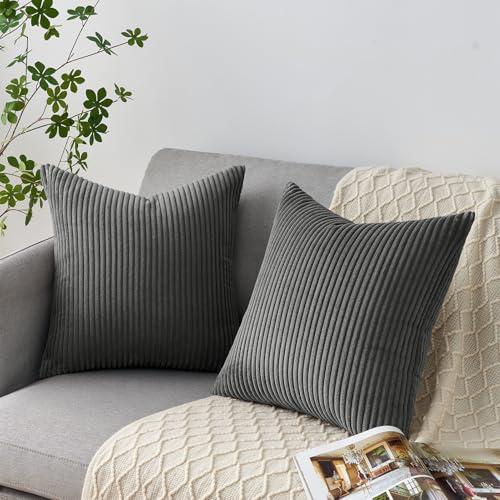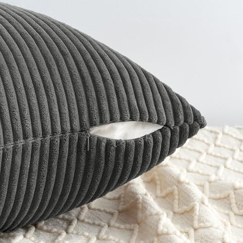 Topfinel Kissenbezug Dunkel Grau 50×50 4er Set Kordsamt Kissenbezüge Kissenhülle Dekokissenbezug sofakissen dekokissen deko für Sofa Schlafzimmer Wohnzimmer Balkon Kinder flauschig,Gestreift