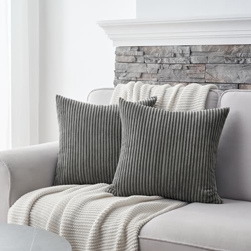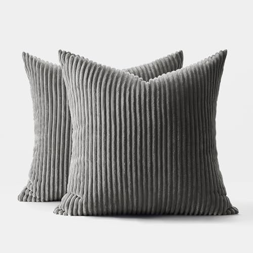 Topfinel Kordsamt-Kissenbezüge, 40 x 40 cm, Boho-Dekokissenbezüge, quadratisch, für Couch, Sofa, Wohnzimmer, Schlafzimmer, Dunkelgrau, 2 Stück