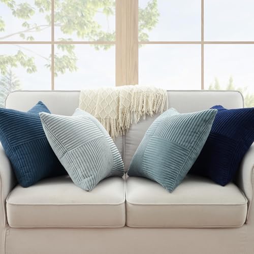 Topfinel Sofakissen Kissenbezug 45×45 Blau 4er Set Dekokissen Cord Kissenhülle Kissenbezüge Deko für Sofa Schlafzimmer Wohnzimmer Dekokissenbezug Sofakissen Dekokissen Balkon Kinder Farbverlauf