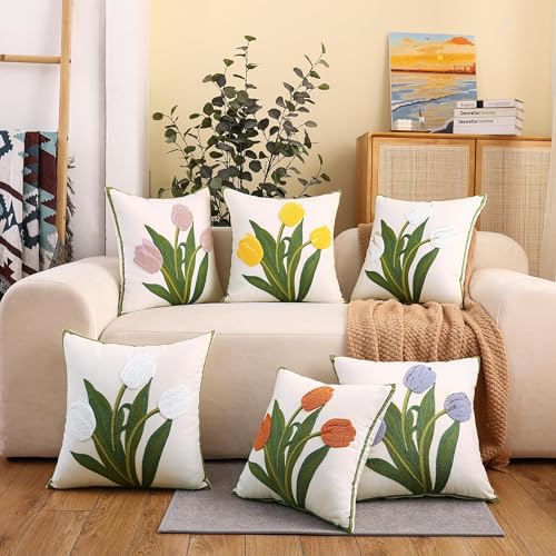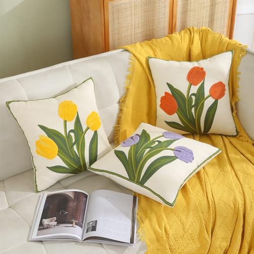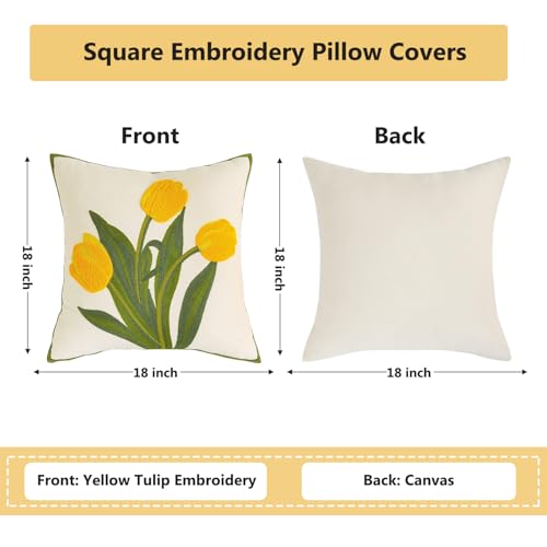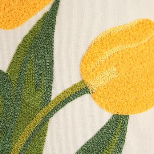 Tosleo 2 Stück kissenbezüge Bestickte Dekorative Kissenhülle Gelbe Tulpe 45x45cm Blume Kissenbezug Wurfkissenbezüge für Gartenlounge Sofa Dekokissen Wohnzimmer Schlafzimmer Bauernhaus