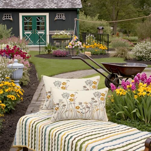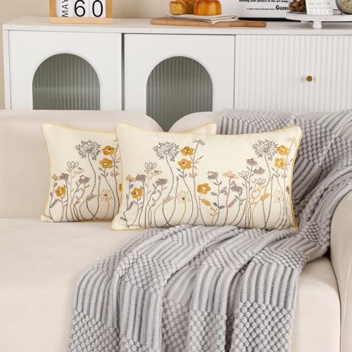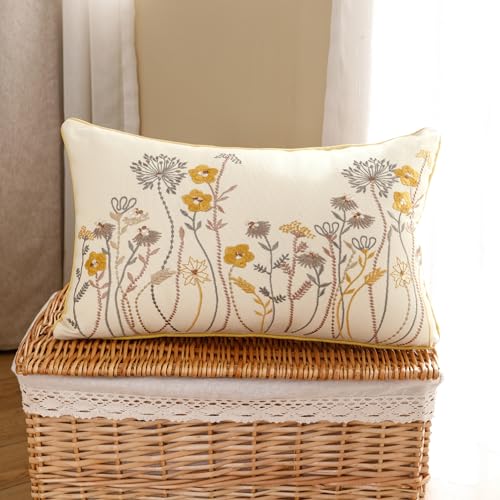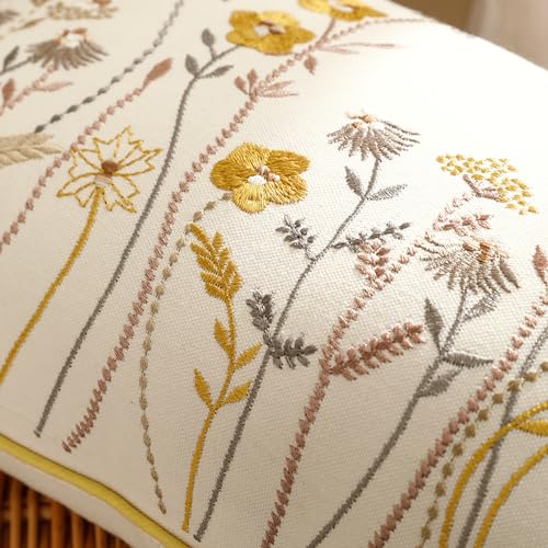 Tosleo 2 Stück Kissenbezug Stickerei 30 x 50 cm Frühling Sommer Gelbe Blüten Dekorative Wurfkissenbezüge für Gartenlounge Sofa Dekokissen Wohnzimmer Schlafzimmer