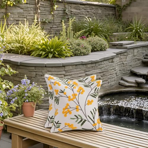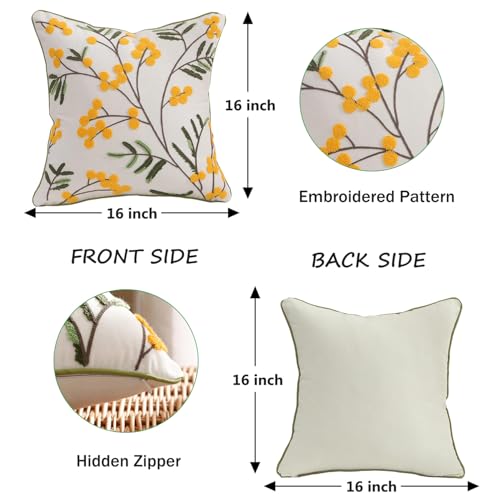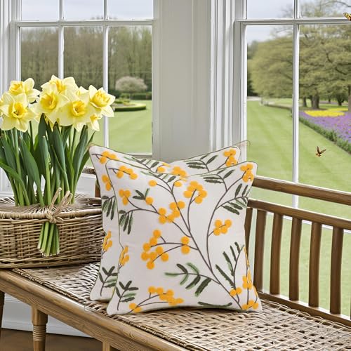 Tosleo 2 Stück Kissenhülle Bestickte 40x40cm Wurfkissenbezüge Gelbe Früchte für Dekorative Gartenlounge Sofa Dekokissen Wohnzimmer Schlafzimmer Kissenbezüge Blumenmuster