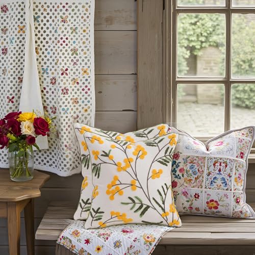 ✿Stoff&Exquisit lebhaftes Design✿: Baumwolle. Je genauer Sie unsere Kissenbezüge betrachten, desto mehr werden Sie sich in die wunderschöne Blumenstickerei und die perfekte Verarbeitung verlieben. Eine ausgezeichnete Wahl, um Farbe und Persönlichkeit in Ihren Wohnraum zu bringen.