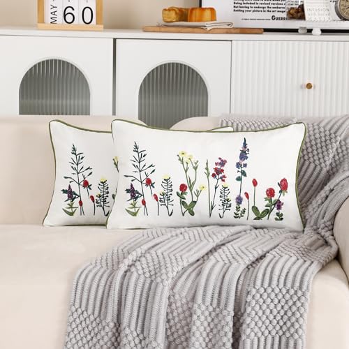 Gestickte Kissenbezüge, 2er-Set, Blumen-Kissenbezüge, trendig, dekorativ, quadratisch, für Sofa, Couch, Schlafzimmer, Wohnzimmer, Auto