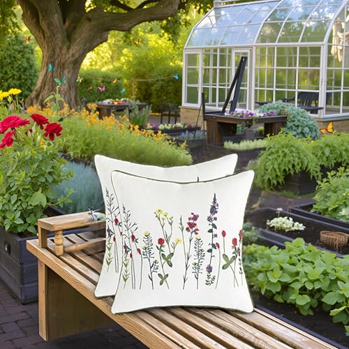Tosleo 2 Stück Set kissenbezüge Bestickte Dekorative 45x45cm Bunte Blumen Wurfkissenbezüge für Gartenlounge Sofa Dekokissen Wohnzimmer Schlafzimmer Bauernhaus