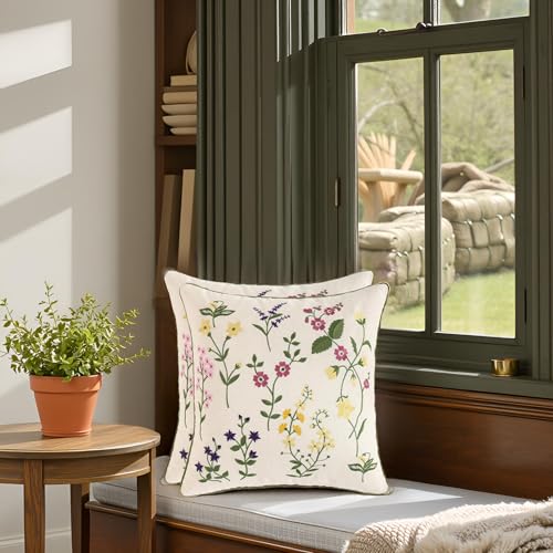 Stoff&Exquisit lebhaftes Design: 75%Baumwolle+25%Polyester. Je genauer Sie unsere Kissenbezüge betrachten, desto mehr werden Sie sich in die wunderschöne Blumenstickerei und die perfekte Erledigung verlieben. Eine ausgezeichnete Konvergenz, um Farbe und Persönlichkeit in Ihren Wohnraum zu bringen
