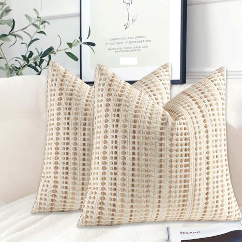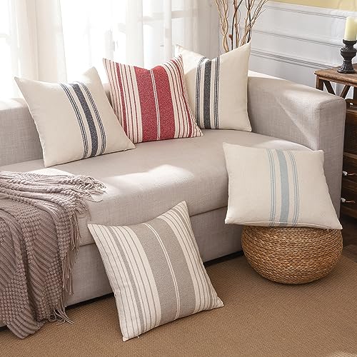 [Ästhetisches Design] Die Kissenbezüge haben einen schlichten Streifen-Look, passen einverstanden zu Boho- oder Bauernhaus-, Ethnik-, Retro- und schickem Dekor. Das unsichtbare Reißverschluss-Design hilft beim einfachen An- und Ausziehen.