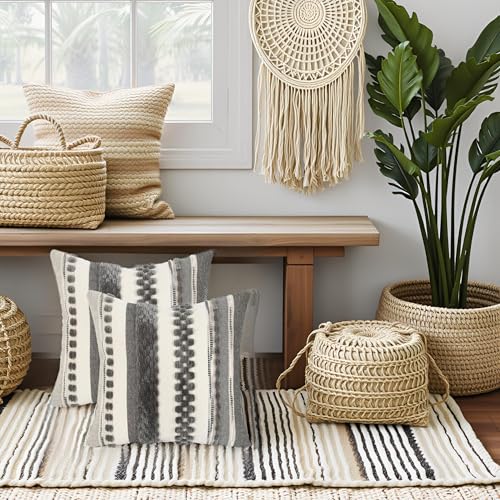 Tosleo 2er Set Kissenbezug Chenille 45x45cm Baumwollmischung Kissenhülle Sofakissen Streifen Dekokissen Boho Deko Kissenbezüge für Sofa Wohnzimmer Schlafzimmer Outdoor Kissen (Grau, 45 x 45 cm)