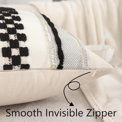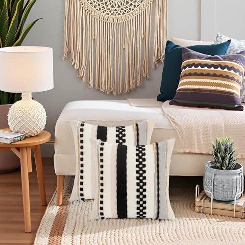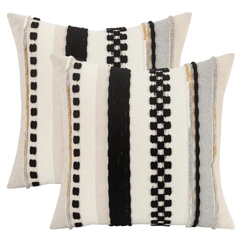 Tosleo 2er Set Kissenbezug Chenille 45x45cm Baumwollmischung Kissenhülle Sofakissen Streifen Dekokissen Boho Deko Kissenbezüge für Sofa Wohnzimmer Schlafzimmer Outdoor Kissen (Schwarz, 45 x 45 cm)