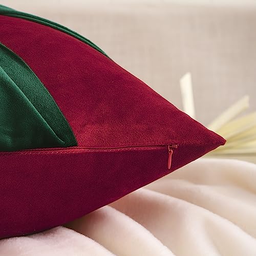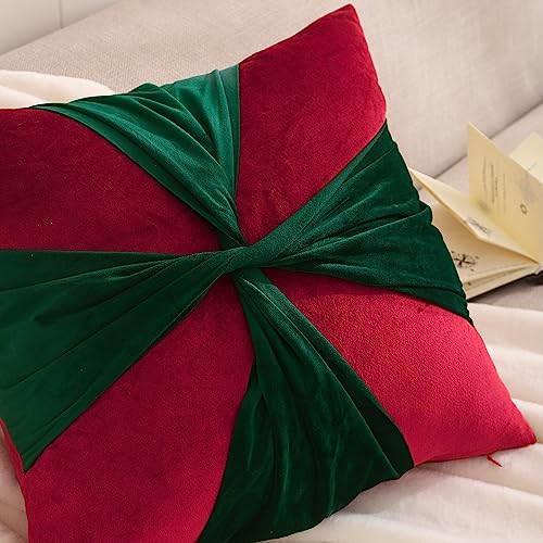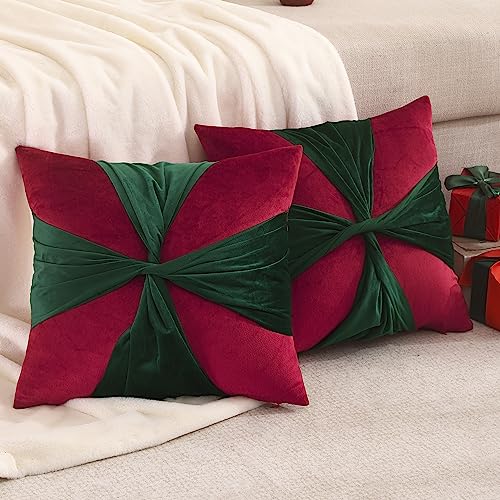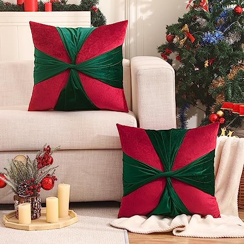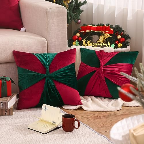 Tosleo 2er Set Weihnachten Kissenbezug aus Samt 45x45CM Grünes Band Dekokissen Deco Kissenbezüge Merry Christmas für Sofa Wohnzimmer Schlafzimmer Couch Party