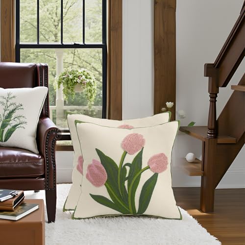 Tosleo Bestickte dekorative Wurfkissenbezüge 40 x 40 cm für Gartenlounge Sofa Dekokissen Wohnzimmer Schlafzimmer 2 Stück Set Kissenbezüge Blumenmuster